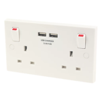 900 SERIES 13A 2-GANG SP SWITCHED SOCKET + 4.2A 2-OUTLET TYPE A & C USB CHARGER WHITE |