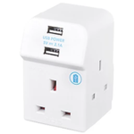 MASTERPLUG 13A FUSED 3-WAY MULTI-WAY SOCKET ADAPTOR + 2.1A 2-OUTLET TYPE A USB CHARGER WHITE |